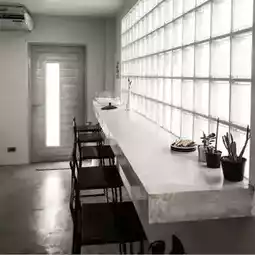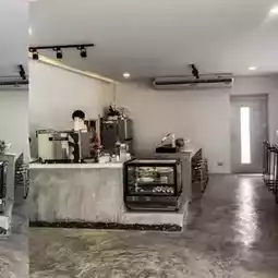 • The shop is a 3-story building decorated in white-gray tones with exposed concrete, minimalist style.