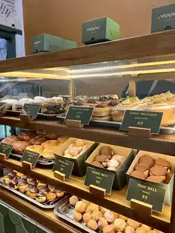 A famous homemade donut shop from Hat Yai. The highlight is that the shop makes homemade donuts with a variety of toppings and fillings to choose from. The taste is good and worth the price. The shop is decorated in earth tones, using wooden furniture contrasting with