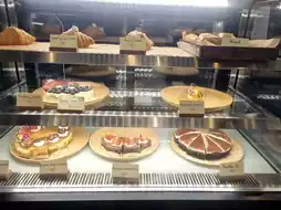 The shop is spacious and crowded, with a wide variety of drinks and delicious cakes. Free water is available, with multiple seating areas and a meeting room available.