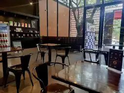 A black-themed coffee shop, but it's a black that gives a good feeling. Today is April, but it's raining, making the atmosphere super cool. Inside, the shop is lively, truly living up to its name, "Sapha Kafae." The menu is diverse, with coffee beans with unique profiles. I chatted with the barista, who convinced me to take some beans home with me. This is another must-visit.