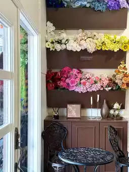 This cozy cafe is sure to captivate the ladies, drawing them in from the entrance all the way to the inside. The small but cozy shop offers a limited number of tables, so be sure to choose your time of day. They offer both coffee and non-coffee drinks, as well as desserts. What makes this cafe special is their flower arrangement service. You can choose your menu at the counter. Content creators shouldn't miss this. They also offer set flowers with drinks for stunning photos. If you don't want a bouquet, you can choose individual flowers from the display case, which the staff will wrap in clear plastic and tie with ribbon. Prices vary depending on the day's flowers. There are also artificial flowers and free healing message cards right in front of the shop, so it's incredibly cute!