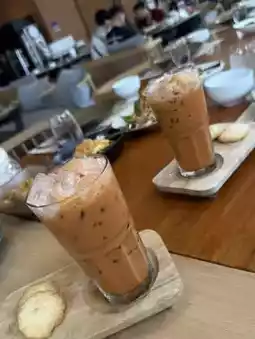🥤 Iced Thai Tea – Fragrant, sweet, and smooth, served with small cookies for a perfect snack.