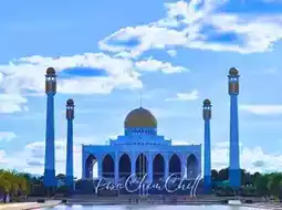 #VisitHatYai If you're looking for a beautiful and unique tourist attraction in Hat Yai, we recommend the Songkhla Central Mosque, or Dinul Islam Central Mosque in full. This mosque is the spiritual center of Thai Muslims in Songkhla Province and boasts stunning architecture, earning it the nickname "Thailand's Taj Mahal." What makes this mosque stand out is its design, influenced by Indian and Arab architecture. The main building features a large emerald green dome that reflects sunlight beautifully. As you approach, you'll notice intricate and carved patterns on the pillars and walls. There's also a large fountain and pond in front of the mosque, which, when the wind blows, reflects beautifully on the mosque's surface. This is a beautiful spot for taking photos and relaxing.