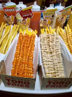 Toro Fries at Central Hat Yai are praised for their long, crispy fries topped with melted cheese. They come in a variety of flavors, including Original Cheese, Spicy Cheese, and Pizza Cheese, each with its own unique identity. These flavors are popular and keep you coming back for more.