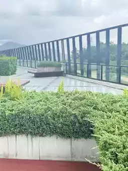 Overlooking the mountains and lush greenery, this is perfect for those looking to relax, breathe in the fresh air, and capture the city and mountain views from a high angle.