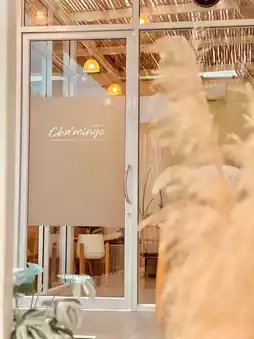 CHAMINGO is a unique and photogenic cafe! It feels like a little-known place. Every corner is colorful and perfect for photos. It's not crowded and quiet, making it a perfect spot for taking photos. Some of the drinks are quite delicious. I personally loved the Hojicha Latte. The strawberry milk was a bit bland, haha. The waffles were crispy. The prices are reasonable, but the cakes are a bit small. If you're interested, give it a try.