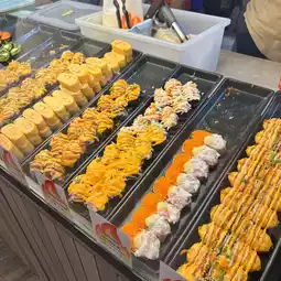 Prices start at just 10 baht per piece! Pick your own or buy a set for a great value. And best of all, they sear the sushi fresh right in front of the shop, creating a wonderful aroma that's hard to resist.