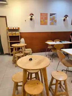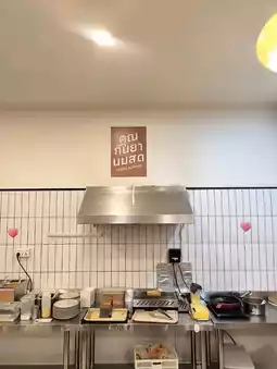 Atmosphere: This fresh milk shop has a great atmosphere, located on a street corner. The shop itself is not very large, decorated in a minimalist style with a white and brown theme, creating a clean and pleasing look. The shop has spacious tables and chairs, making it not crowded and comfortable to sit in. There are also tables and chairs in front of the shop. In the evening, the shop has warm lighting, making it a very inviting place to sit. The shop offers a wide selection of drinks, ice cream, bread, and toast with various toppings. They also offer savory dishes. The taste is excellent.
