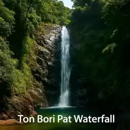 Next, head to Ton Boriphat Waterfall, towering and powerful. The water gushes down from a high cliff into a crystal-clear pool below, creating a scene that's both majestic and peaceful.