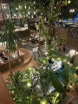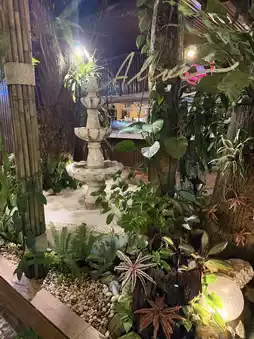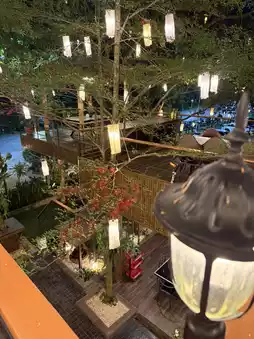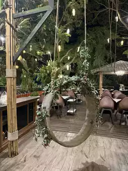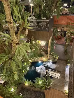 The ambience was excellent 👍 abundant greenery, tall plants, and hanging vines blend seamlessly with the wooden architecture, creating a fresh, jungle-like vibe.