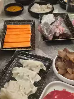 A popular Chinese hotpot in Hat Yai. Today, I tried it. Prices start at 399 baht with no additional charge. The menu is comprehensive for those who don't eat seafood. They offer self-serve ice cream and two sauces. I personally love the restaurant's signature soup, a homemade pork bone broth. It's not overly rich. The sauce is delicious. The meat and vegetables are fresh. It's a great value for the price. Parking may be necessary, as the restaurant is always crowded. We recommend making a reservation.