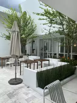 Inside, seating feels airy yet intimate, with both indoor, air-conditioned corners and some outdoor spots, though the latter can be a bit warm in peak sun.