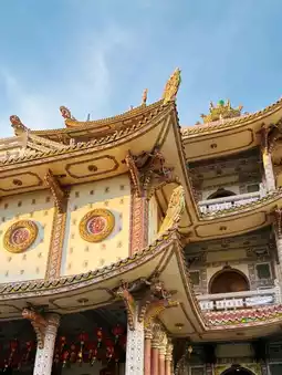 Elegant Buddhist temple architecture with intricate carvings. 🏯