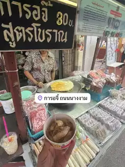 Stop by for some Auntie Mon's egg buns, fragrant and soft on the inside, and then try the sweet and savory Kaloji on Nang Ngam Road. 🍩
