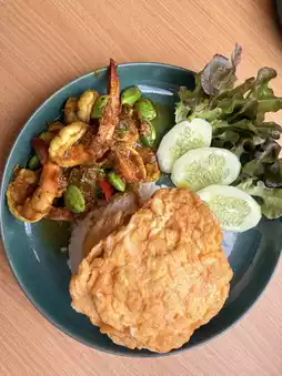 The crunchy stink beans smell amazing! The fluffy, crispy omelet goes perfectly with hot rice. 🤤💛