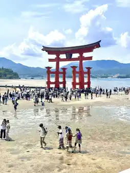 It is famous for its torii gate floating in the sea, but you can see it close to the torii gate at low tide👟