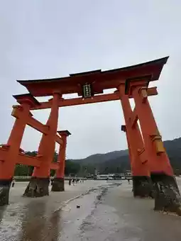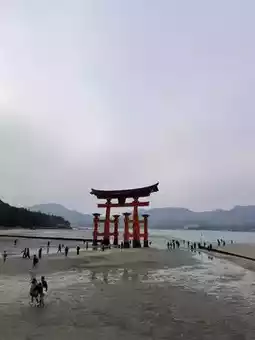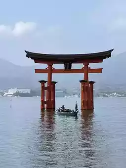 Itsukushima Shrine|The ebb and flow of the torii gate create a serene and calming scenery.