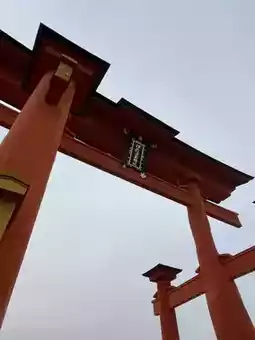 Walk along the tide and when you reach the torii gate, you will understand what "magnificent" means. There are a lot of mosses and barnacles under the torii pillars. This one standing on the sea is the gate to the divine realm.
