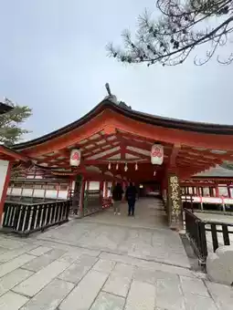 It was 1:30 pm on a Thursday and there weren't many people. After getting off the boat, we went to the shopping street to eat oysters and other snacks, and then strolled to Itsukushima Shrine.