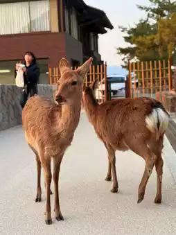 If you've visited Nara, you must remember the adorable deer that beg for food. These deer are considered messengers of the gods and are closely associated with the sacred Kasuga Taisha Shrine. However, in Hiroshima's Miyajima, there's another group of deer that roam freely—from boardwalks to shopping streets, and even along the embankments. Unlike Nara's deer, Miyajima's deer are not divine messengers; they are, in fact, indigenous residents of the island.