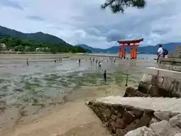 The atmosphere at Itsukushima Shrine is incredibly soothing, with a calming energy that helps you find peace. We carefully checked the tide schedule and chose to visit during low tide. Wearing waterproof, non-slip shoes, we slowly walked toward the torii gate standing in the water. The tranquility and grandeur of that moment were unforgettable. During low tide, you can closely admire the intricate details of the torii gate, which feels especially sacred. We stayed for a while to watch the tide gradually return, submerging the torii gate once again. The scenery at different times is equally captivating. Around the shrine, there are many walking paths and small shops, making the overall experience very pleasant. It's a place that is both majestic and tranquil. Highly recommended for slowing down and immersing yourself in the harmonious blend of nature and spirituality.