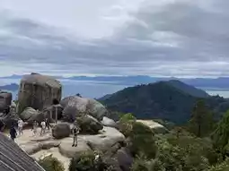 It takes about 10-15 minutes to walk from the base to the cable car station. Although there is a free shuttle bus to the station, it runs every 20 minutes and has limited seating, so walking is often faster. The cable car ride is divided into two sections: the first from Momijidani Station to Kayatani Station (smaller cabins, longer wait times), and the second from Kayatani Station to Shishiiwa Station (larger cabins, longer distance). Kayatani Station doesn't have much to see, so proceed directly to Shishiiwa Station for the views. If you have the energy, it's highly recommended to hike to the summit of Mount Misen. Along the way, you'll encounter (1) Reikado Hall: Home to the "eternal flame" burning for over 1,200 years, which also lit the "Flame of Peace" in Hiroshima Peace Memorial Park; and (2) Kuguri Iwa: A narrow passage under a rock that fits 1-2 people. From the summit, you can enjoy panoramic views of the Seto Inland Sea and the islands, as well as a distant view of Hiroshima. These two spots are among the "Seven Wonders of Mount Misen." The other wonders are less remarkable, so I didn't specifically seek them out.