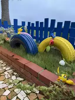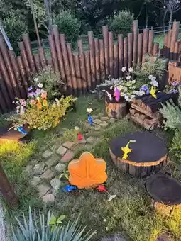Pikmin were displayed inside several fenced areas in the large plaza.