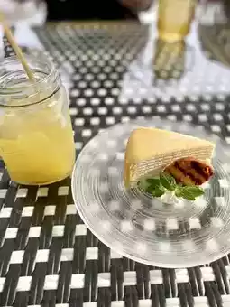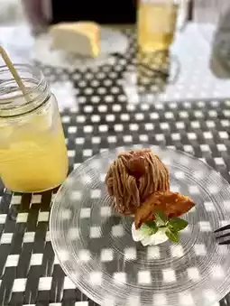 The highlight? Their open-air terrace surrounded by nature, where you can enjoy sweets while soaking in the fresh breeze. I ordered the Mont Blanc, apple tart, and mille crêpe—all beautifully presented and incredibly satisfying. The Mont Blanc had a rich chestnut flavor, the apple tart was warmly spiced, and the mille crêpe was soft with just the right amount of cream.