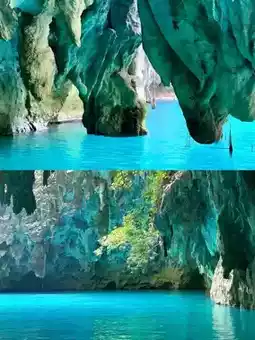 Baimo Cave: A magical underground cave with strange rocks and stalactites of various shapes. Under the light, it presents a dreamlike scene.