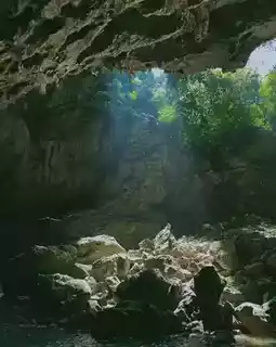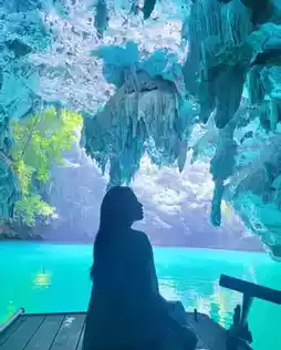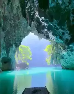 ❷ Linna Cave: Walk to the right of the big banyan tree to the cave, and you can enjoy the water view and boats under the skylight
