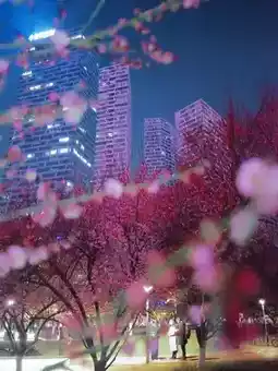 The plum blossoms at night in Hefei are amazing! Green Axis Park is really stunning!