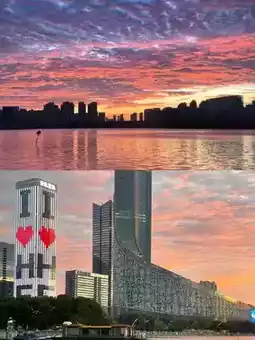 🌅At sunrise, the first rays of light sprinkle on the lake, sparkling, as if covering Swan Lake with a layer of golden gauze. Early birds circle over the lake, their calls clear and crisp, awakening the city.