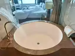 Bathrooms come with TOTO fixtures, separate showers and bathtubs, while select room types even feature smart toilets and Siemens washer-dryer combos for laundry convenience.