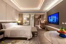 Dining options are excellent, featuring time-honored Tongqinglou (serving Huizhou and Cantonese cuisines), all-day buffet, Japanese cuisine, seafood hot pot, and barbecue. Room service and contactless robot delivery are available for those who prefer dining in while binge-watching.
