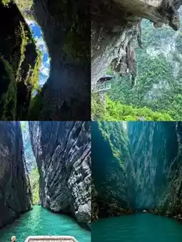· Route: Scenic area entrance → Canyon plank road (descending) → Core attractions (floating boat photo) → Boat through the canyon (enjoy One Line Sky and other sights) → Nuoyuan Cave (photo with heart gesture) → Shuttle bus back