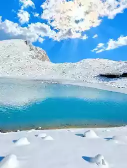 Step on the soft new snow to shoot panoramic views, the glacier glows with a dreamy light blue hue, prayer flags flutter in the wind and snow~ Snap a shot with your arms wide open in front of the snowy mountains and instantly blow up your social feed!