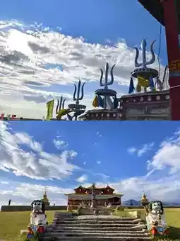 The only Tibetan Buddhist temple⛩️ on the grasslands, with red walls and golden roofs against snowy peaks🏔️. Spinning prayer wheels here is soul-soothing.