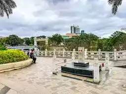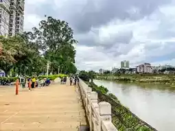 Many Chinese tourists take pictures looking at Vietnam nearby, and Vietnamese tourists who have crossed over to China take pictures and walk around this park, enjoying the joy of crossing over to another country.