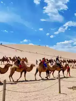 🌞Morning: Speed to Shapotou! The sheepskin raft drift feels like a "Yellow River roller coaster," desert dune buggy rides shake your soul out, and remember to wear sunglasses to protect against sand when riding camels.