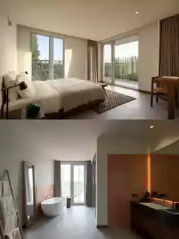 15 rooms converted from the original factory workshop, each with floor-to-ceiling windows and a viewing balcony. You can lie on the soft big bed and enjoy the vineyard scenery🌌. I especially love the rattan lounge chairs on the terrace; lying there at night, you can see the rare clear starry sky of Yinchuan🌃