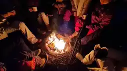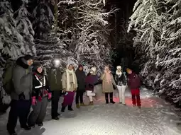 The trails wound through towering pine trees dusted with fresh snow, leading to breathtaking viewpoints and peaceful frozen lakes. Stopping at a wilderness firepit, we warmed up with hot coffee and grilled sausages over an open flame—nothing tastes better after a cold hike! The cozy scent of burning wood mixed with the fresh winter air made the experience even more special.