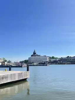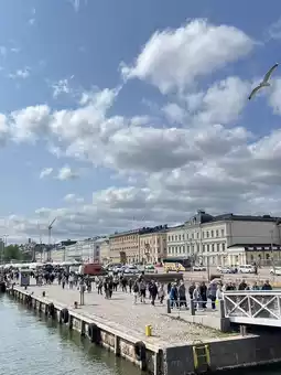 Walk along the outdoor saunas (because, hello, Helsinki essentials) toward Vanha Kauppahalli (Old Market Hall). Grab a great coffee from Restaurant Story and get it to go. Step outside and enjoy the views by the water – the perfect spot to recharge and people-watch.