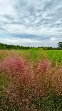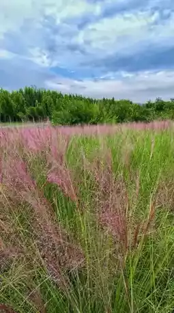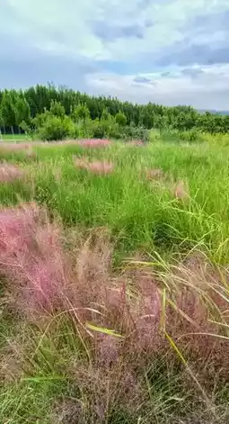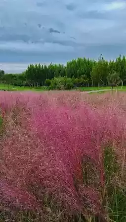 The sky over Beilong Lake is a layer of gray-blue clouds, but the ground is dressed in a sea of pink, with the air infused with a pink hue. The waves of pink muhly grass roll like a romantic scene from a fairy tale.