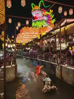 ✅Must-try 1: Nanyueli Temple Fair Cultural and Food Street. This newly built national-style commercial pedestrian street in Hengshan County is a 5-minute drive from the foot of Hengshan Mountain. The entire street, less than 1 km long, is lined with Chinese-style ancient buildings, mainly featuring Hunan snacks. When the lights come on at night, it feels like traveling back to the Tang and Song dynasties. During major holidays, there are also performances featuring women in ancient costumes dancing on boats and firework shows.
