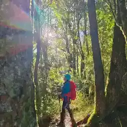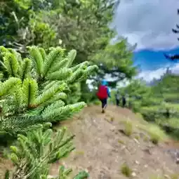 The return journey passes through Songfeng Ridge and exits at Shengguang Trailhead, where a shuttle truck takes hikers back to their accommodations. Walking on the wide pine needle carpet with beautiful forest scenery, hikers can enjoy breathtaking views of Taiwan's Hundred Peaks on clear days, making up for the regret of not being able to climb them. Along the way, unknown wild mushrooms and small flowers add charm to the journey. The Pingdu Traverse, with its mountain views and serene atmosphere, is truly a soul-cleansing adventure.