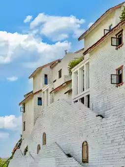 Seaview Terrace: This boat-shaped building, adorned with bougainvillea cascading from every windowsill, creates a truly romantic atmosphere, especially when the flowers are in full bloom.