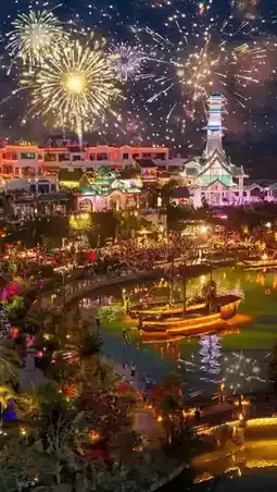 The spectacular fireworks show starts at 7 PM, so remember to secure your spot early. The night lighting in the scenic area is also beautiful, as if traveling back to the ancient Maritime Silk Road port 🎆