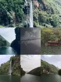 Highlights: Comprising Longquan, Lengjia, and Yangtiao gorges, the dramatic landscape features deep green waters, rugged rocks, and cascading waterfalls—poetically described as "silver snow piled on the river, white waves leaping into boats."
