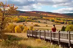 Overhead shots of your back on the boardwalk with colorful forest as the background—amazing! Exact location: East viewing platform of Princess Lake💕