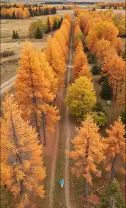 👉 Standing on the wooden boardwalk at Princess Lake, the golden birch forest reflects on the lake, instantly giving you the feeling of stepping into a Nordic fairy tale! (Exact location: Southwest Keshenketeng Banner, Chifeng City, Inner Mongolia)